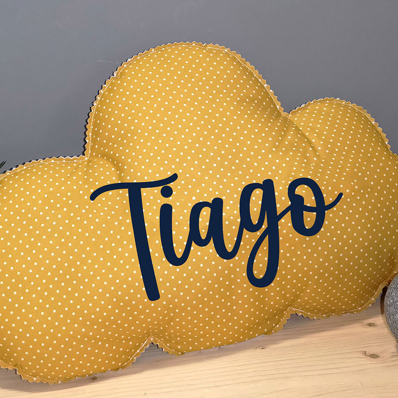 Coussin Nuage avec Prénom Jaune Moutarde
